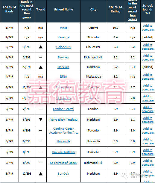 【嘉德教育参考】2015年安省最新中学排名及选校选房